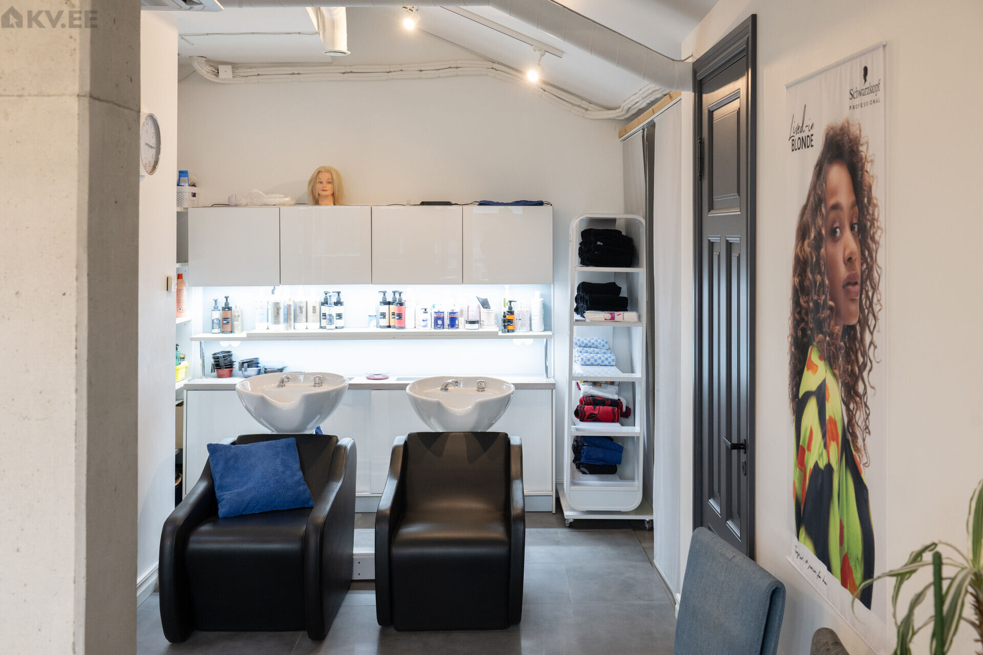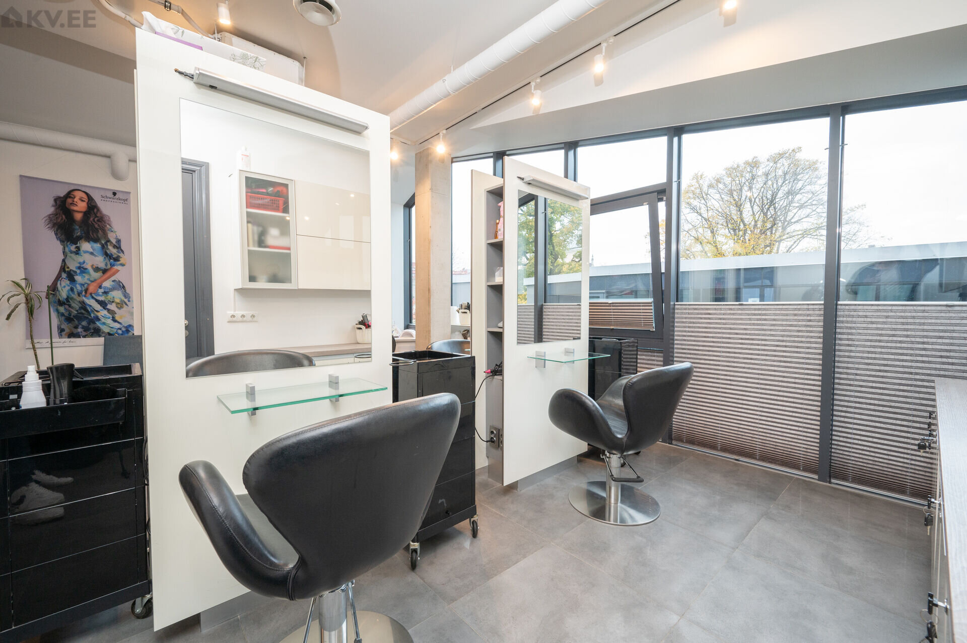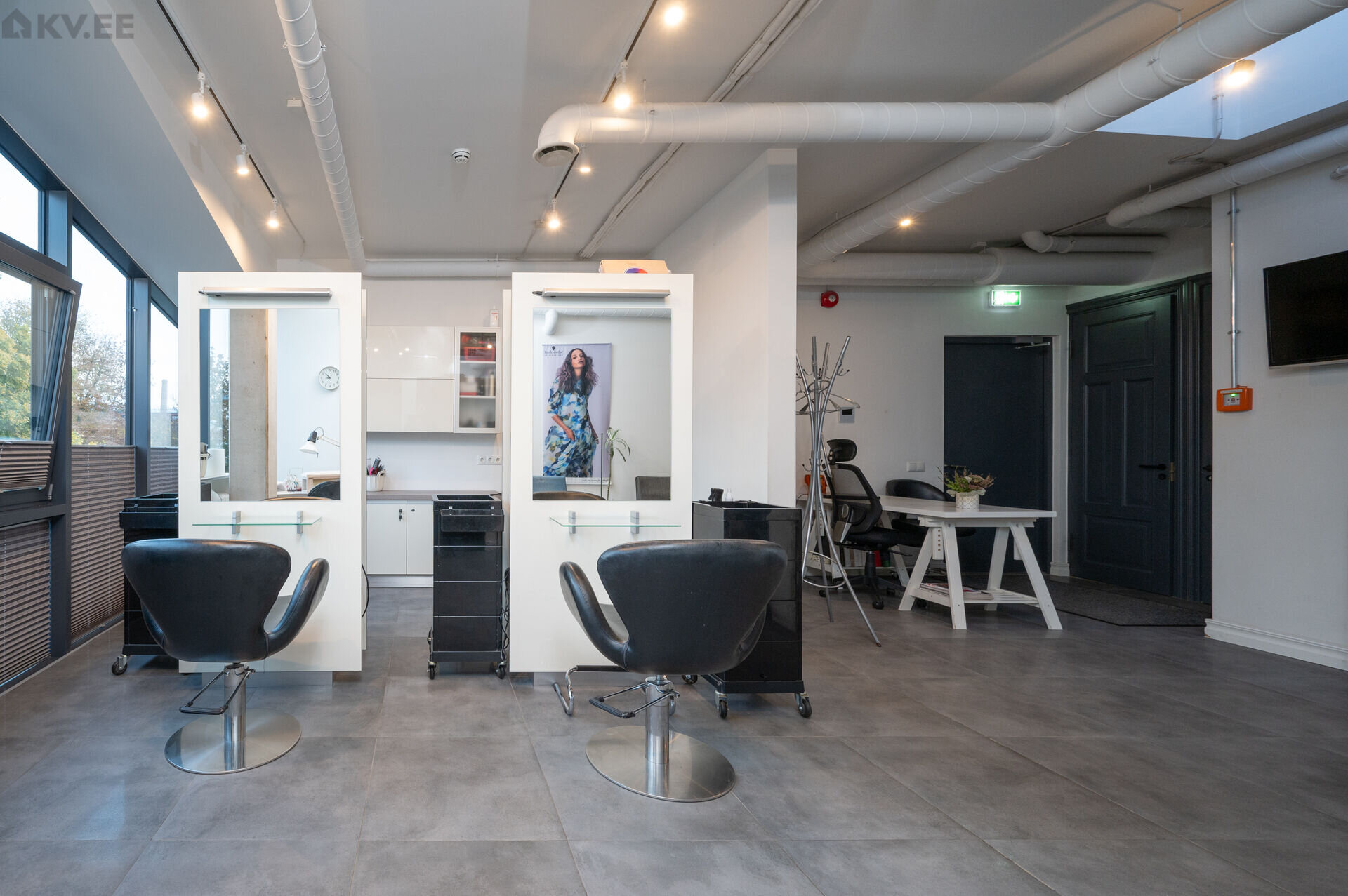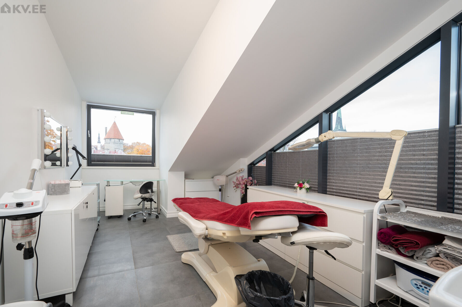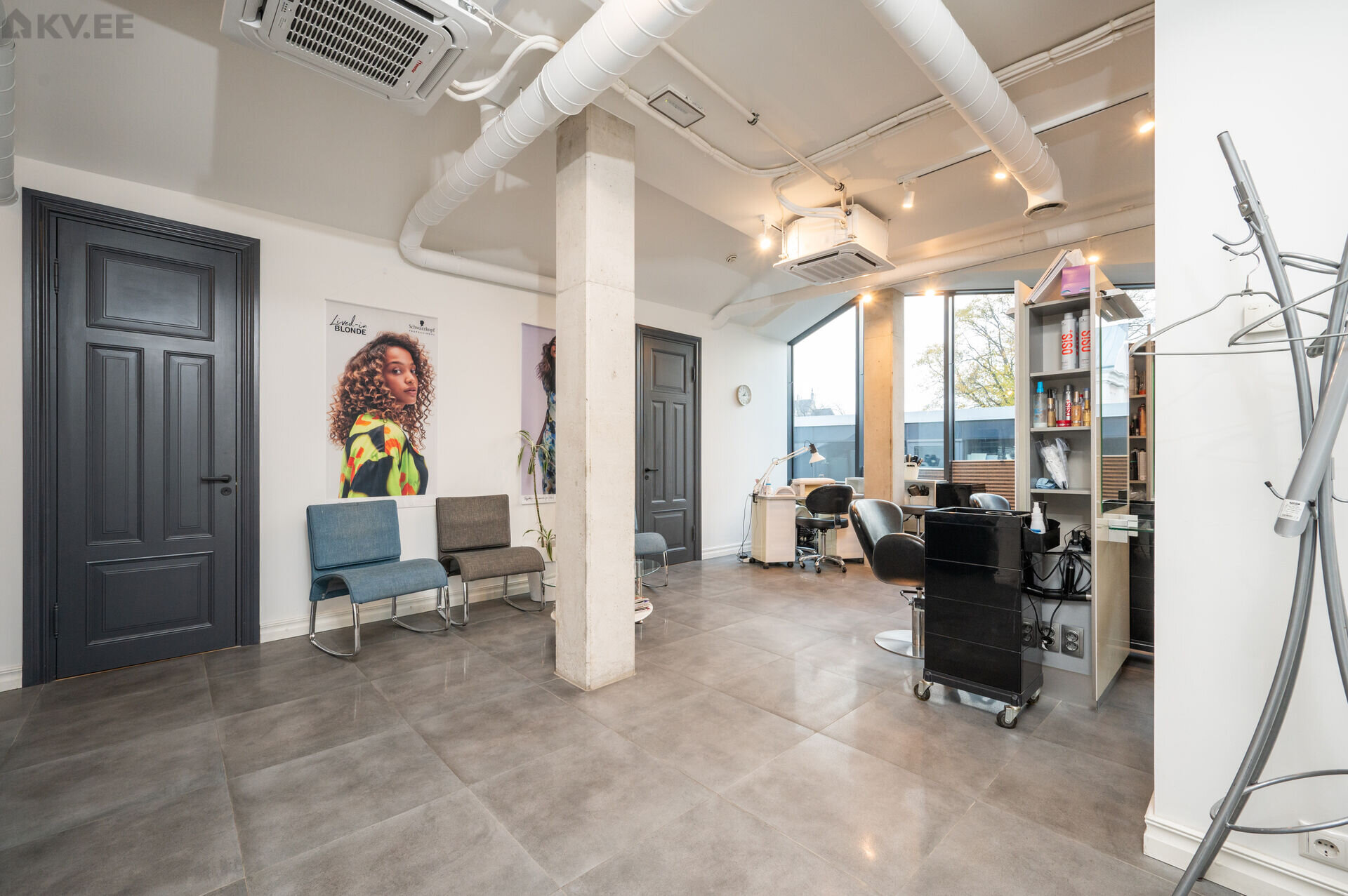 Loodud: juuksuritele 4 töökohta, 2 privaatset kabinetti kosmeetikutele ja töökoht küünetehnikule. Lisaks on eraldatud puhkeruum, klientidele ooteala, walk-in garderoob ja wc. Kõikides ruumides on suured aknad ja palju loomulikku valgust, kaunid vaated vanalinnale. Salongi sisustus on uueväärne ja ideaalses seisukorras.